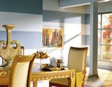 Beim Anstrich der Wände in Streifen ist es nützlich die meist gebrauchten Techniken zu beherrschen. Beim ersten Mal sollte man die einfachsten Varianten wählen: der Farbenunterschied der Streifen sollte höchstens eine Tönung oder eine halbe Tönung betragen, oder man kann die "Schattenstreifen"- Methode wählen, wobei die Wand in einer Farbe gestrichen wird und auf die noch nicht ausgetrocknete Oberfläche die Papierstreifen der gewünschter Breite aufgeklebt werden; die offen gebliebene Stellen werden mit einer Glossfarbe gestrichen (auf immer noch nicht ausgetrocknete Wände) und die Papierstreifen werden abgezogen. Man bekommt ein feines, aber ein sehr originelles Ergebnis.