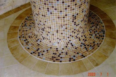 Ergebnis. Runde Säulen und flache Wände. Diese Dekorformen betonen verschiedene Anwendungsmöglichkeiten des Mosaiks.