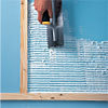 Die Hydroisolierung wird gewöhnlich in zwei Etappen gemacht. Die Boden-Wandanschlußfugen werden erstens mit Dichtband abgedichtet, damit die Deformierung bei der „Bewegung" der Wand vermindert wird. Dann wird die Hydroisolierungsschicht aufgestrichen. Erst dann kann man mit dem Verkleben der Fliesen beginnen.
