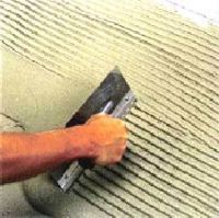 Bei der Verlegung der Fliesen auf feste, stabile und wasserfeste Holzoberfläche oder auf alte keramische Fliesen wird eine Klebstoffmischung empfohlen, die Haftkraft und Elastizität verstärkt. Man kann auch elastische Emulsion in den Klebstof einmischen.
